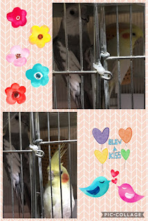 くりちゃんが ウキョウキョ♪♪楽しげに鳴いていると〜いつも同じ場所に じっとしているのに 鳥かごの金網に登って くりちゃんに返事している ももちゃん*\(^o^)/*